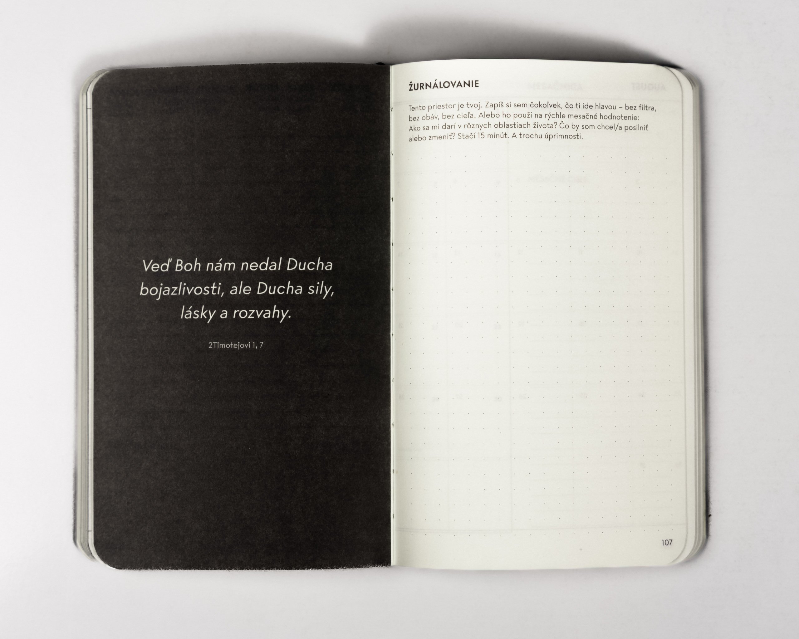 – závěr měsíce: citát z Písma a prostor pro journaling, reflexi měsíce