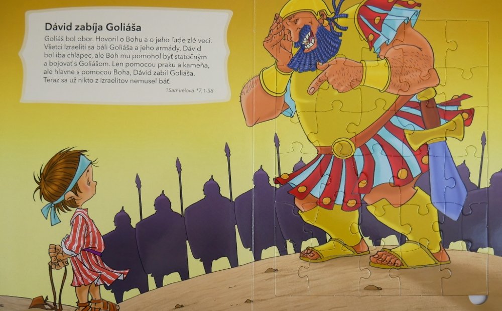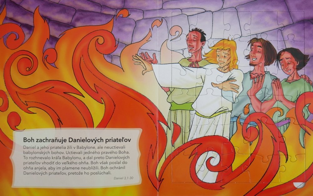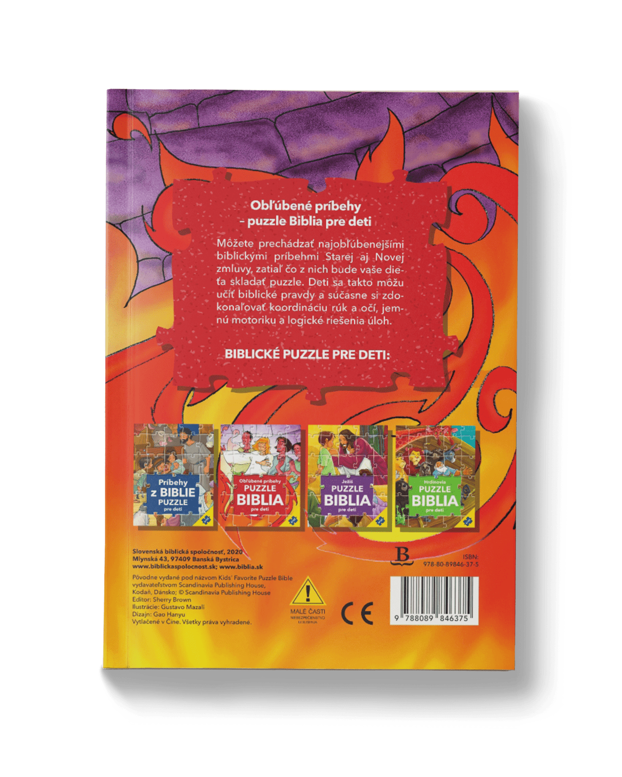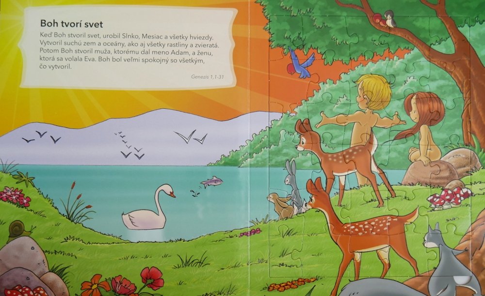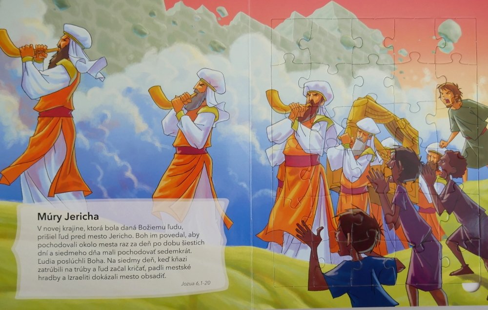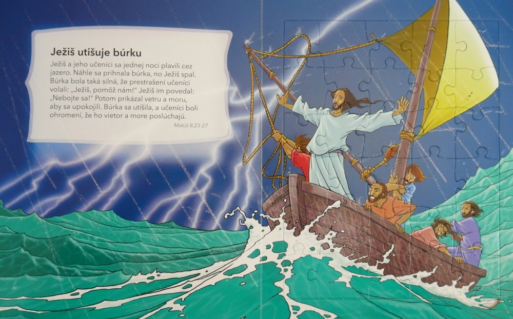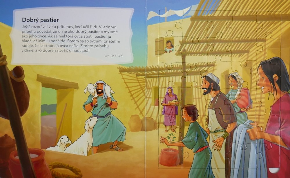 Můžete procházet nejoblíbenějšími biblickými příběhy Starého i Nového zákona, zatímco z nich bude vaše dítě skládat puzzle. Děti se tak mohou učit biblické pravdy a zároveň si zdokonalovat koordinaci rukou a očí, jemnou motoriku a logické řešení úloh.