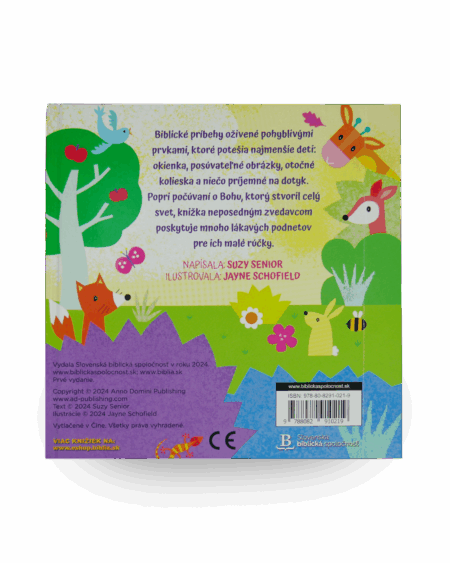 Otevři stránky této knížky, které jsou mnohem VĚTŠÍ, než si myslíš, a prozkoumej zábavné pestré obrázky se známými biblickými příběhy. Dokážeš najít věci, zvířata a postavy, které jsou na obrázcích ukryté?