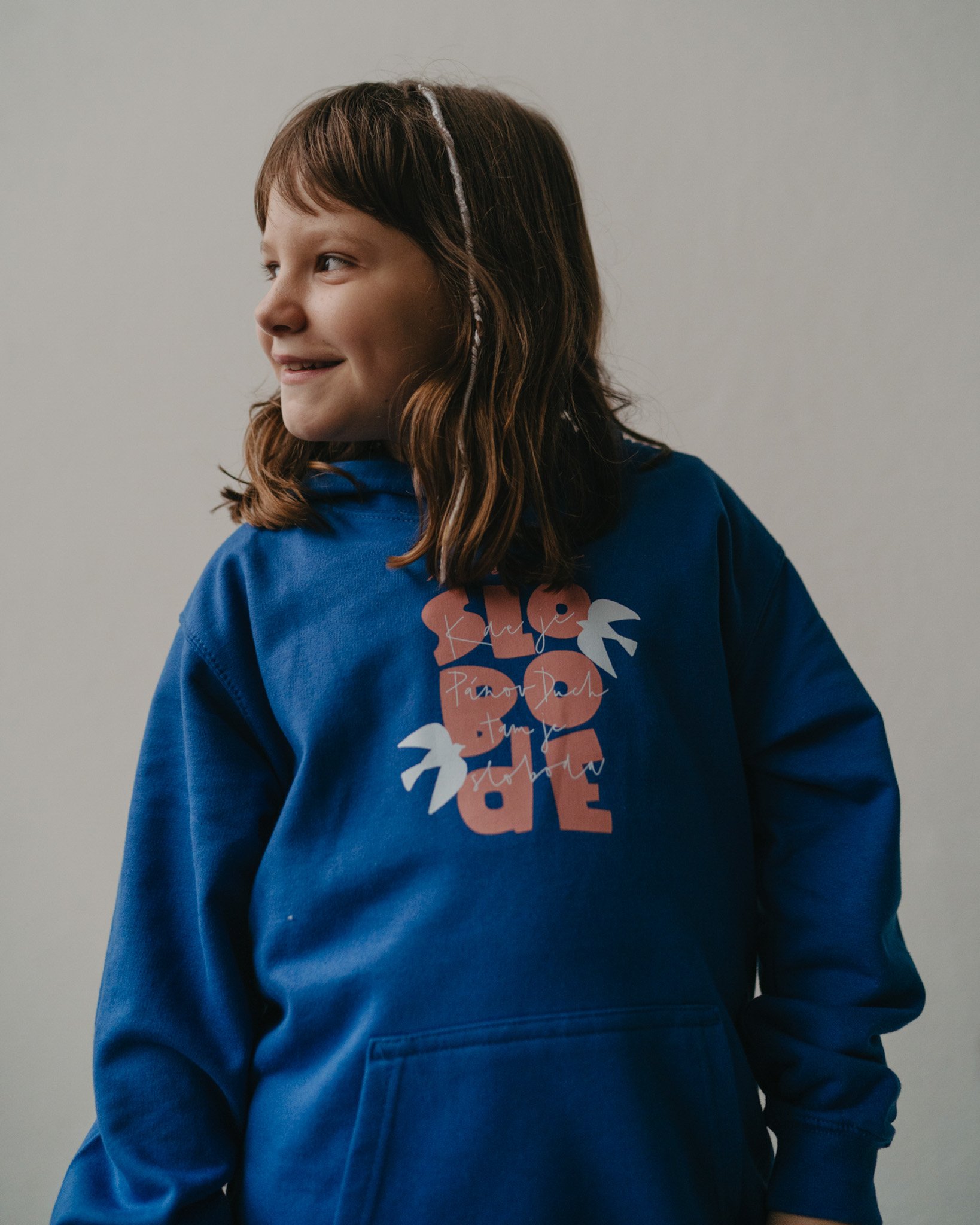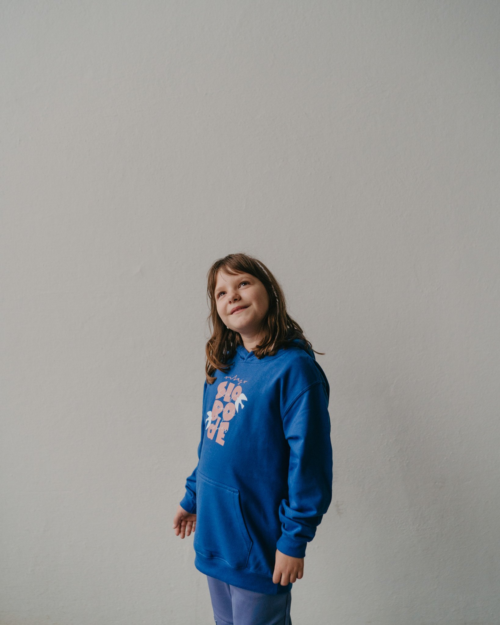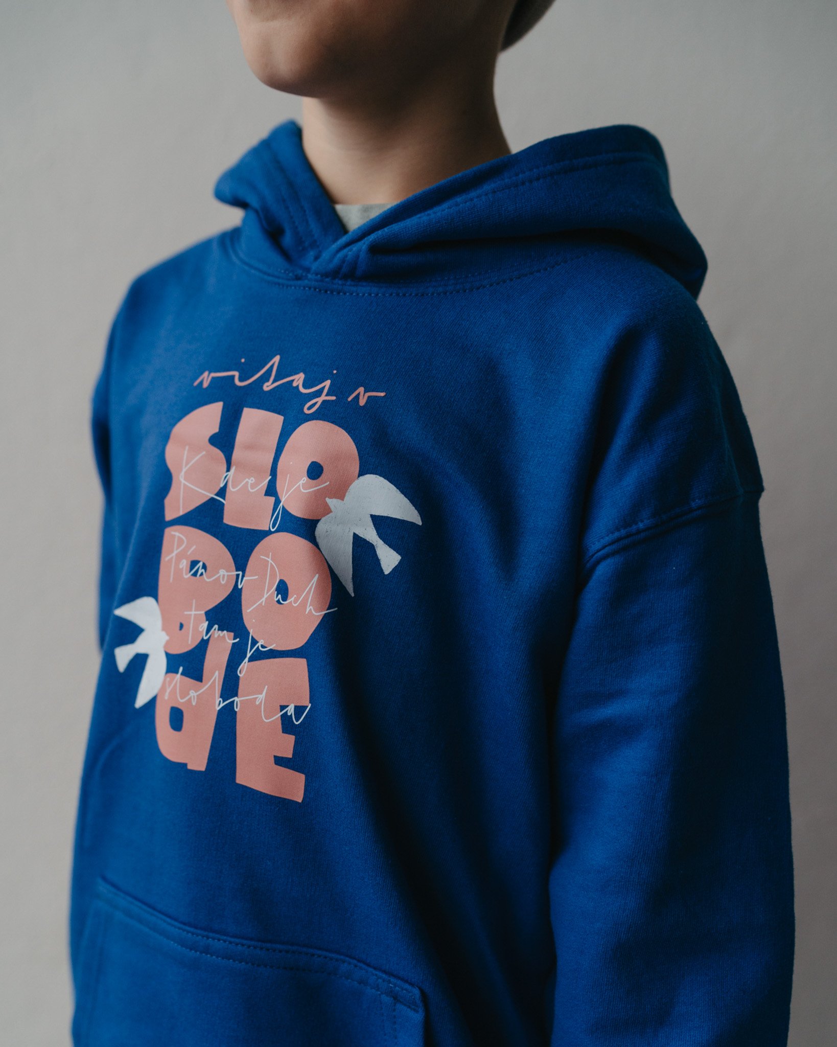 Střih: Mikina má rovný dětský střih, kapuci a klokaní kapsu.