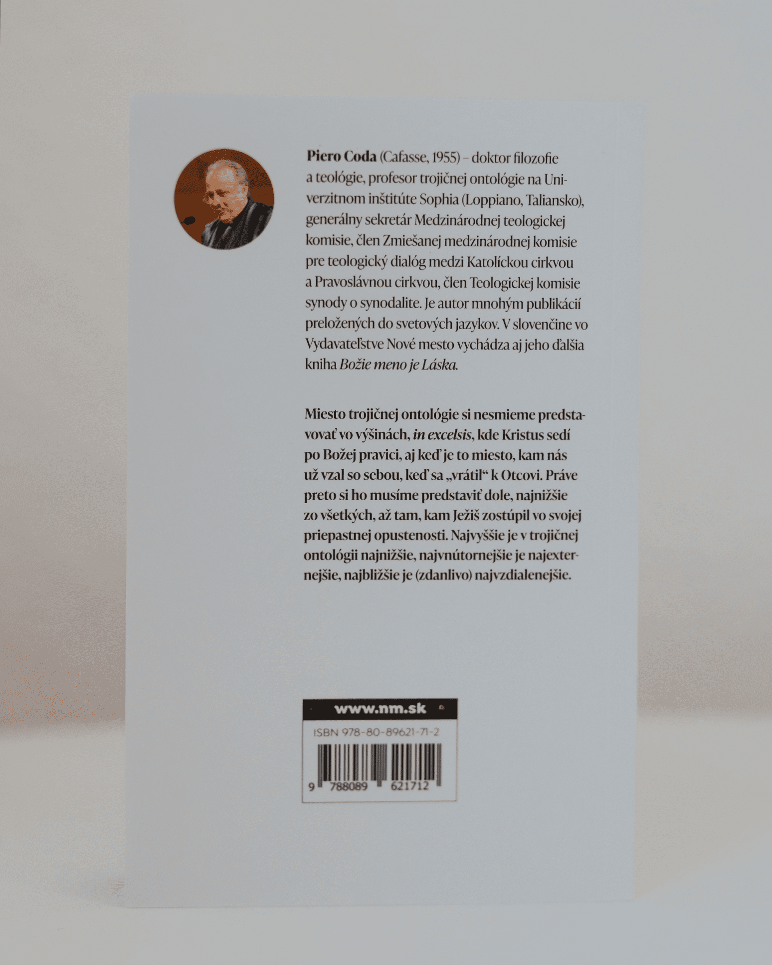 Trojiční ontologie se dívá na bytí z perspektivy Trojice a díky Ježíši nás vtahuje do jejího tajemství. Z křesťanského pohledu jde o událost, která je možná díky Ježíši. Nemá však dopad jen na náš život, ale také na myšlení. Italský teolog Piero Coda nás zve k tomu, abychom se snažili nejen žít, ale i myslet způsobem Trojice. Kniha je pozváním otevřít se či prohloubit se ve filozoficko-teologickém poznání a je výzvou uvádět osobní poznávání do každodenního života.
